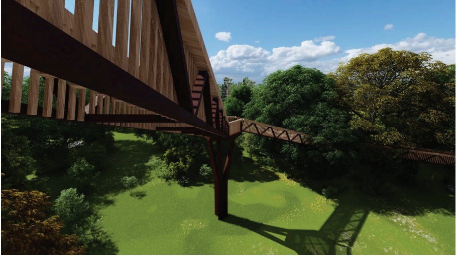 La nueva infraestructura con la que contará el campamento de El Raso de la Nava es una pasarela aérea de 240 metros lineales de longitud total, dividida en 15 tramos horizontales y verticales, con un ancho de 1,5 metros cada uno. La estructura estará sustentada sobre 12 plataformas de apoyo de 10 m² cada una, elevadas sobre pilas que permitirán al visitante caminar literalmente entre las copas del bosque. La nueva pasarela aérea supone un novedoso enfoque de interpretación del pinar de Pinus sylvestris de Covaleda, considerado el más extenso de Europa.