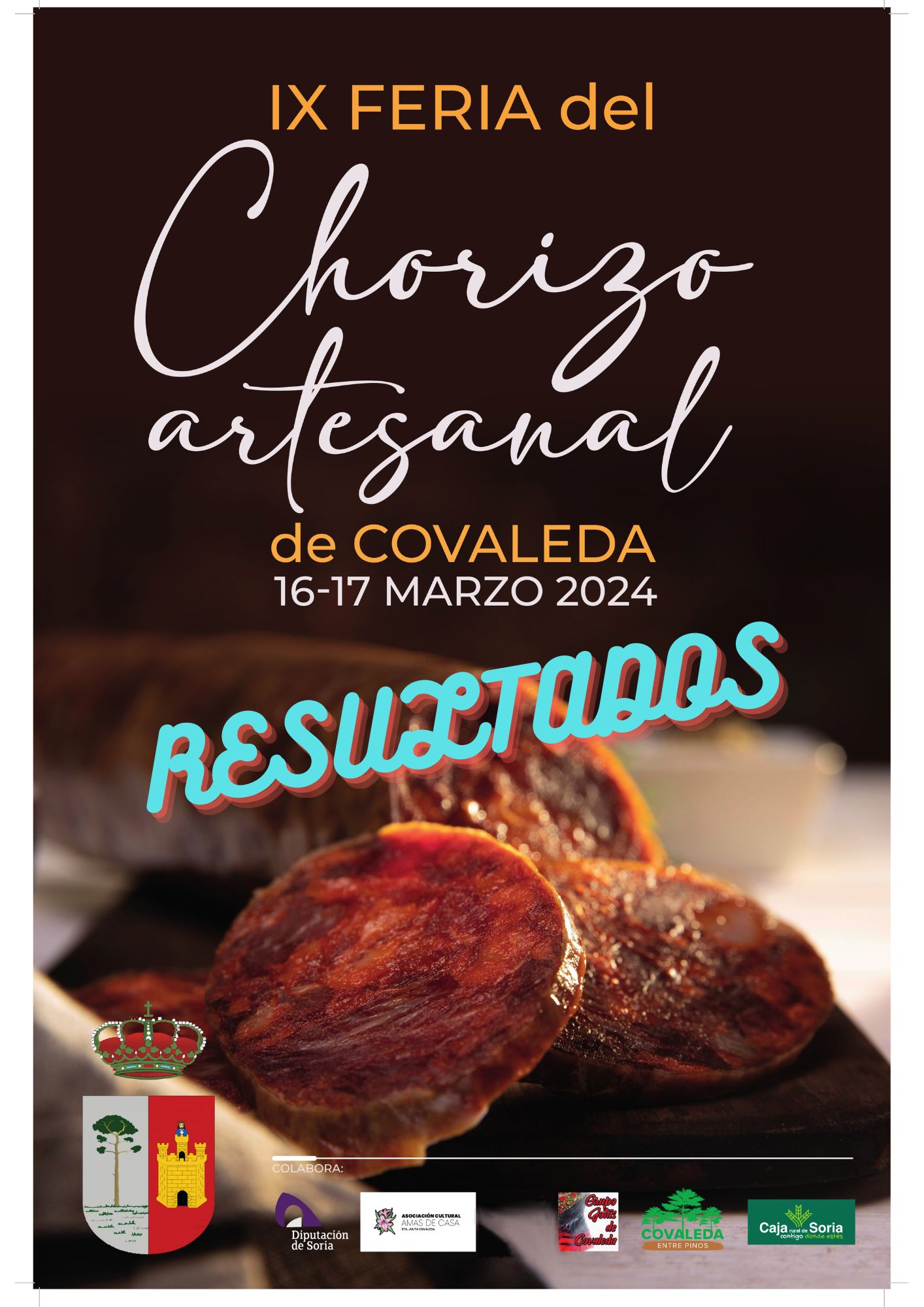 Enhorabuena a los ganadores y agradecimientos a los participantes. Han sido 138 las muestras que se han catado en el concurso con un gran nivel. Desde el Ayuntamiento de Covaleda queremos agradecer a los expositores que han llenado el polideportivo con sus ricos productos, al grupo de Jotas de Covaleda por su magnífica exhibición y la labor incansable de la Asociación de Amas de Casa Santa Julita. También agradecemos a los establecimientos colaboradores en el IX certamen de tapas de la matanza, a Cerrajería Lejuss por su muestras cedidas para exponer, a Ángel Antón por cortar los chorizos para la cata y a Luis Alberto Simón por la Máster Class tan interesante. Para poder obtener estos resultados hace falta un gran jurado que pueda apreciar los matices de cada muestra, por ello, un agradecimiento especial para los 14 jurados del concurso. GRACIAS.